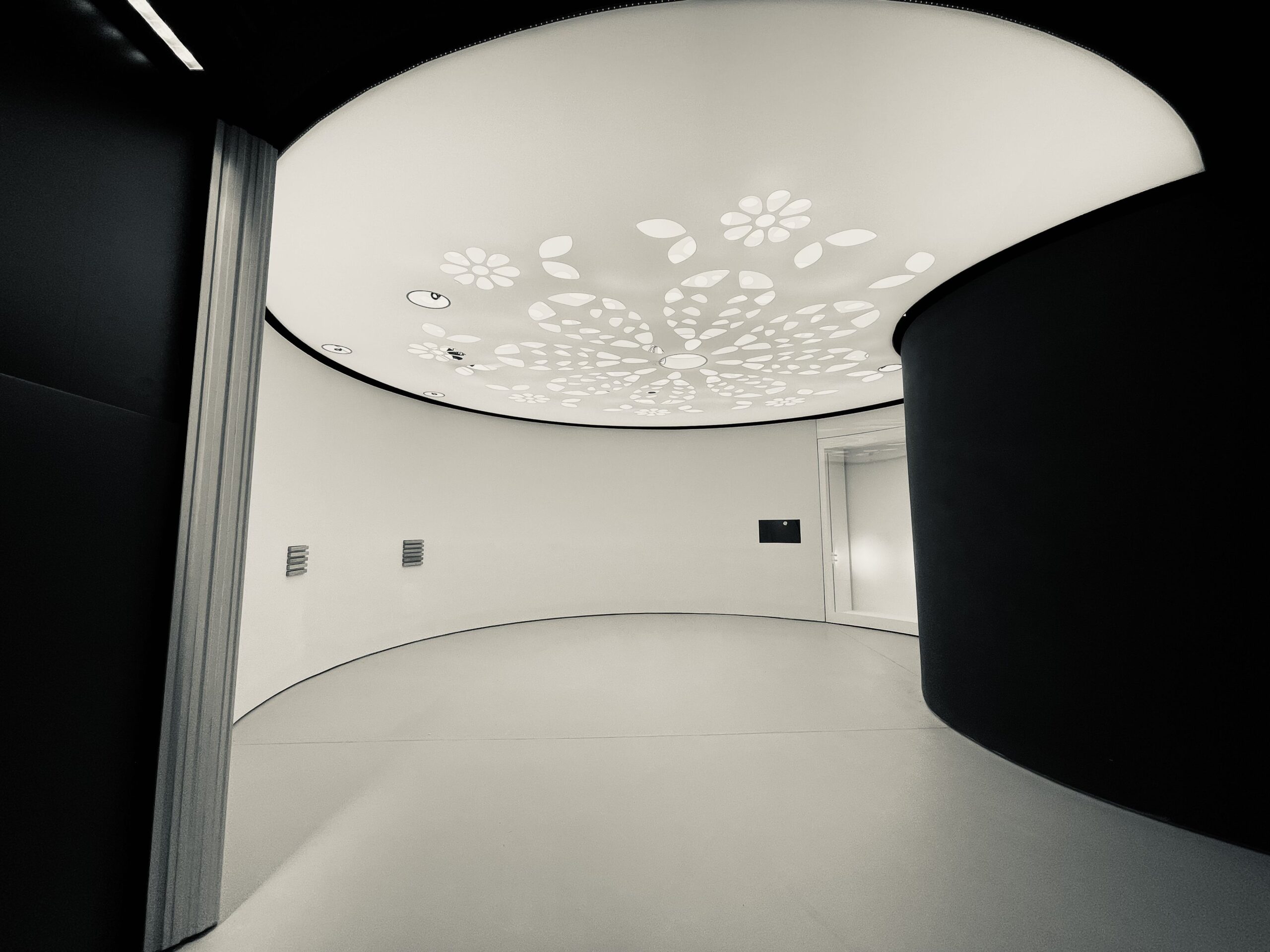 La structure de Vecta Volume est toujours une combinaison de deux feuilles. Une feuille est utilisée comme couche de protection ou comme couleur de fond, tandis que l'autre est découpée de manière artistique. Les deux feuilles sont installées à des distances différentes (à partir de très près l'une de l'autre), ce qui crée des effets visuels différents.