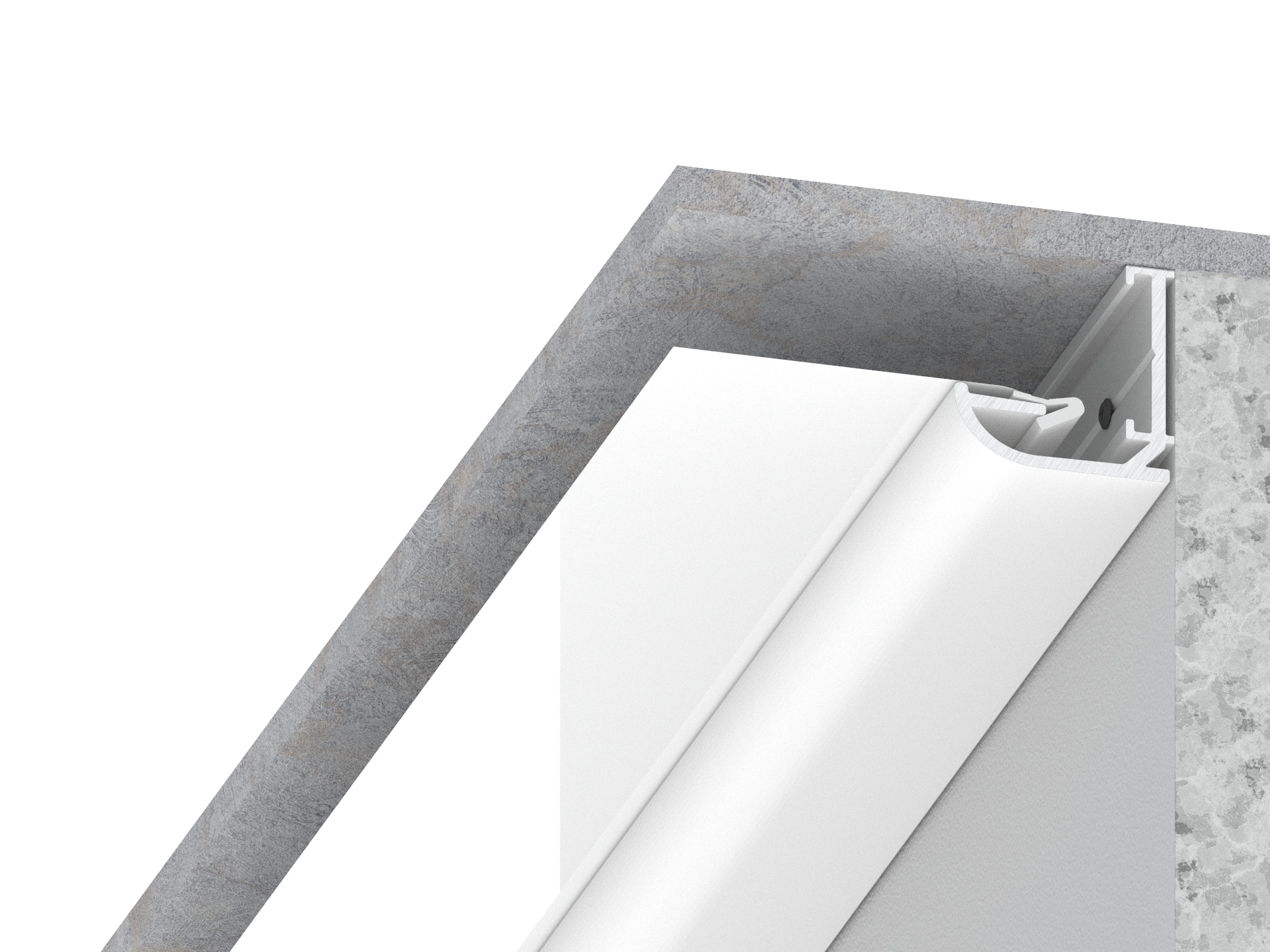 Basic aluminum profile for perimeter stretch ceiling installation. The profile is attached to the walls only. Creates a molding effect around the perimeter of the structure.